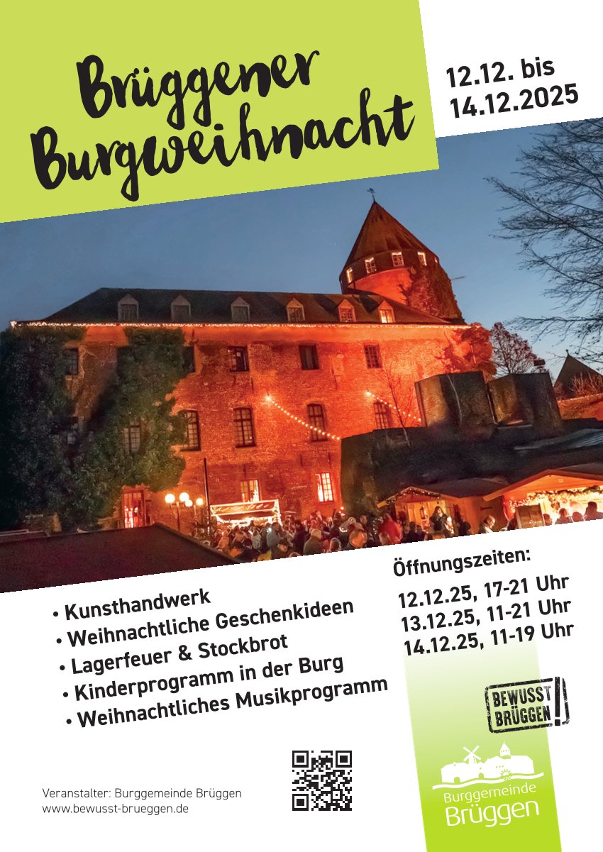Brüggener Burgweihnacht – gemütlicher Weihnachtsmarkt rund um die Burg Brüggen.