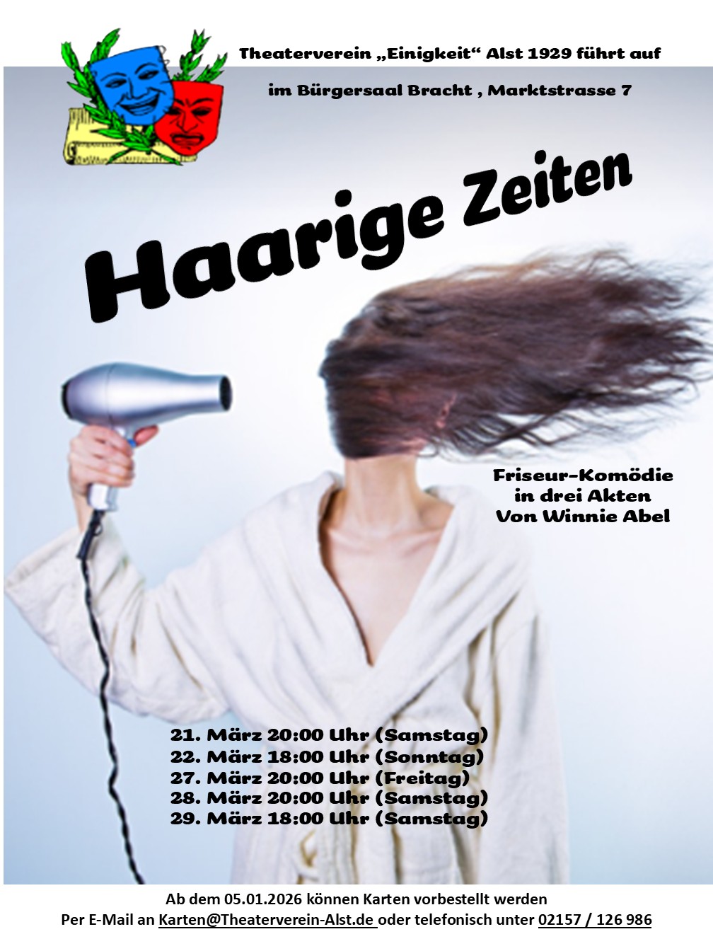 Der Theaterverein führt im Jahre 2026 das Stück „Haarige Zeiten“ von Winnie Abel auf.